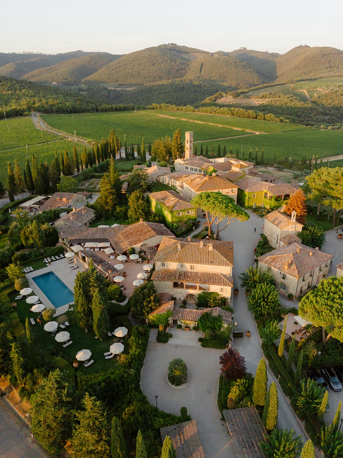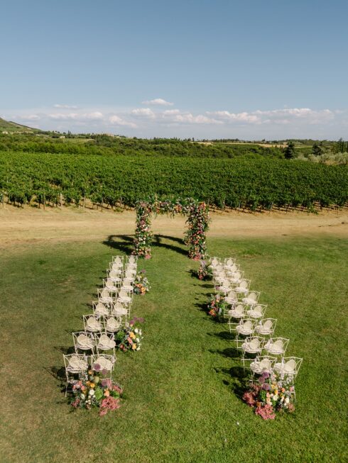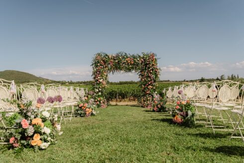 An oasis of luxury in the heart of Chianti. Discovery the true charm of Tuscany at this regal destination. Celebrate your eternal love with this gleaming property’s seemingly endless vineyard, grandstanding oak trees and, gorgeous views of historic Siena towers in the distance.